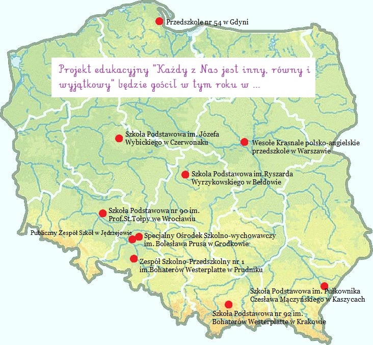 Szkoły biorące udział w pierwszej edycji projektu "Każdy z Nas jest inny, równy i wyjątkowy"