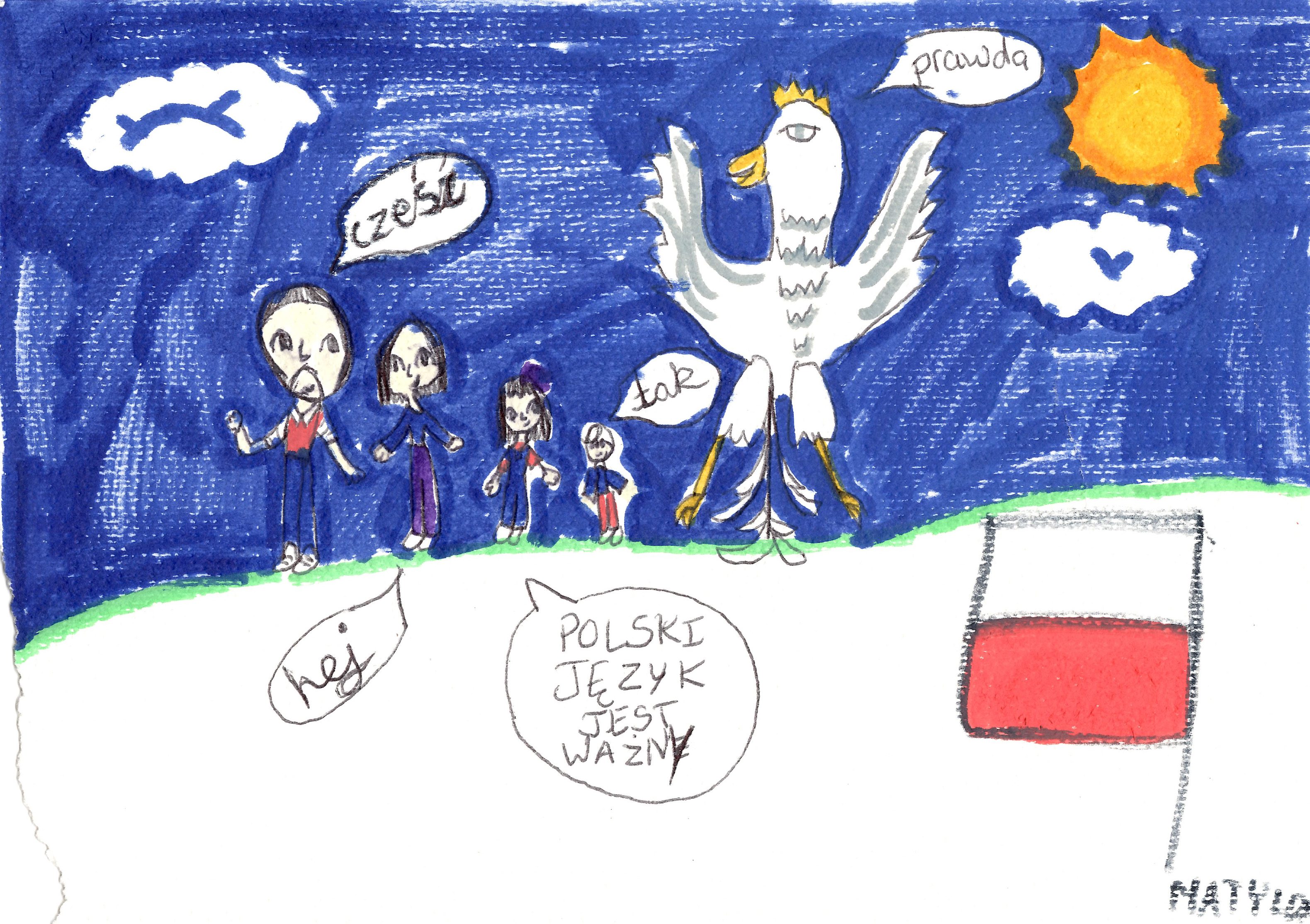 Polska jest dla mnie fajna, bo lubię polską kuchnię, i moja babcia tam mieszka. Polska jest fajna, bo lubię widoki, a w Polsce jest ich bardzo dużo. Polska jest fajna, bo ja lubię góry i Mazury, i duże rzeki.