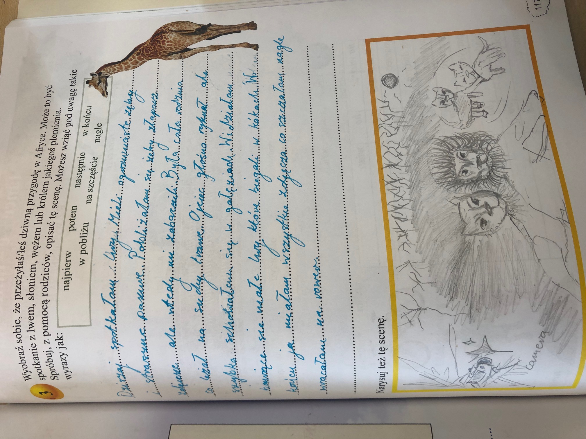 Uczniowie wymyślali i opisywali własną przygodę, próby tutaj