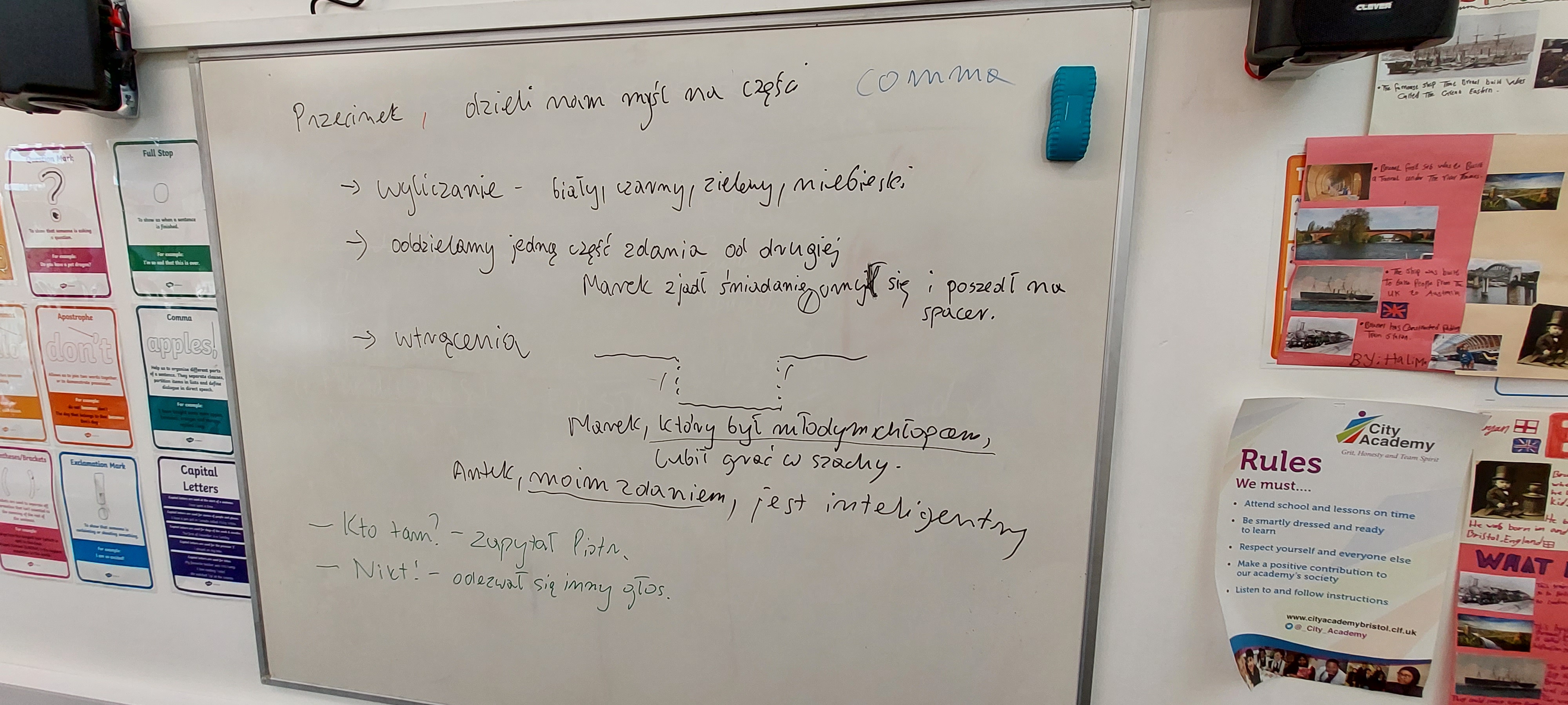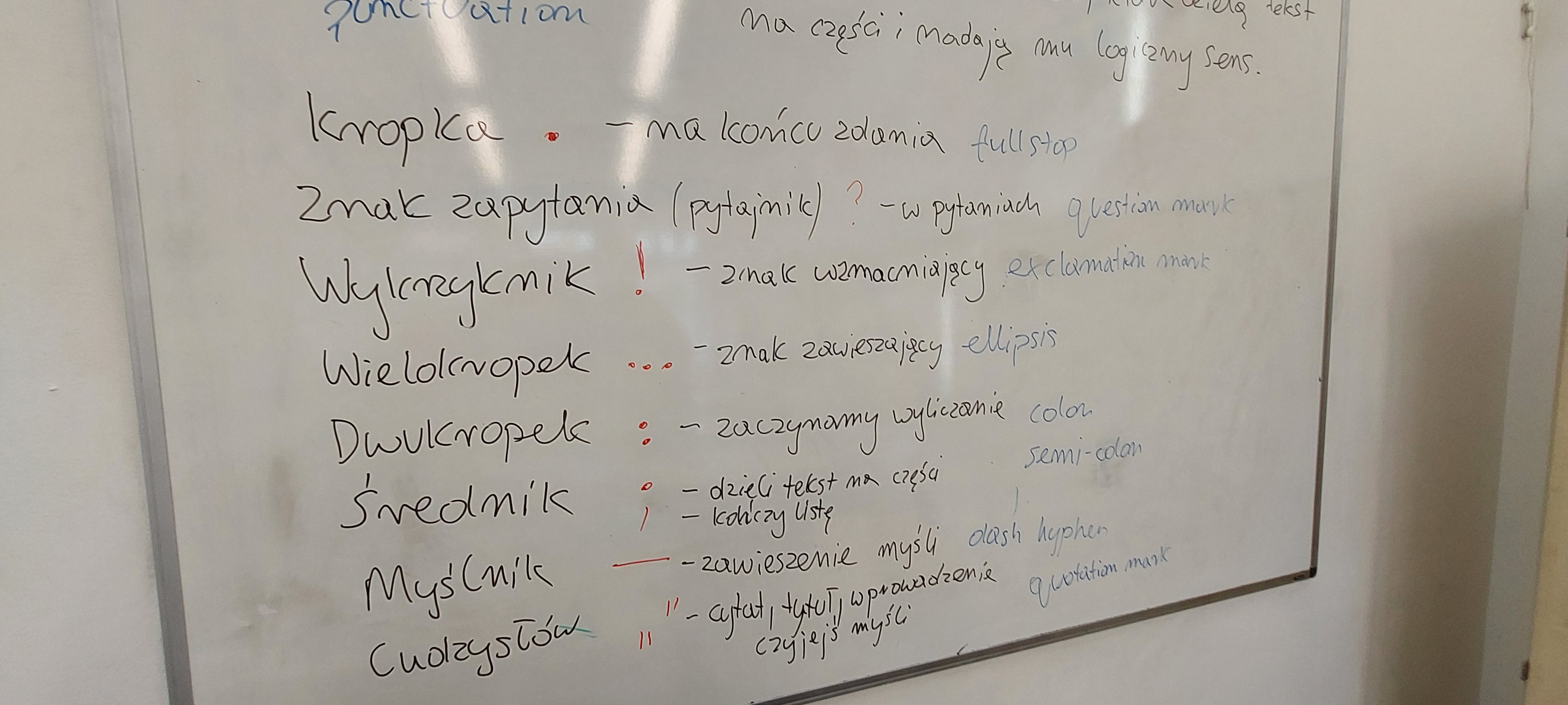 - omówiliśmy zasady polskiej interpunkcji i wykonaliśmy ćwiczenie na kartkach,